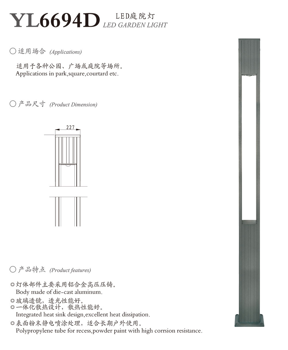 Home > Product Display > LED GARDEN LIGHT > YL6694 >YL6694D
